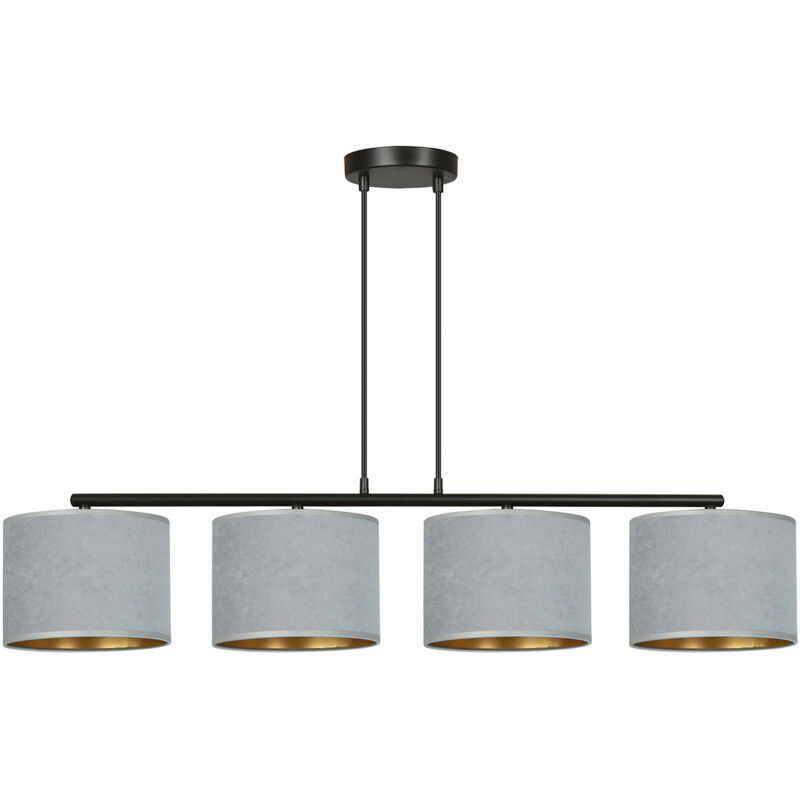 Emibig HILDE Plafoniera a sospensione a barra nera con paralumi in tessuto grigio, 4x E27 | Finitura: nero | Materiale: acciaio, paralume in tessuto | Grado di protezione IP: IP20 | Altezza: 100 cm | Larghezza: 97 cm | Diametro paralume: 20 cm | Tipo di lampada: E27 | N. di lampade: 4 | Lampadina inclusa: non inclusa | Dimmerabile: Sì - Sono necessarie lampadine dimmerabili | Peso: 2,7 kg | Potenza (max): 60 W