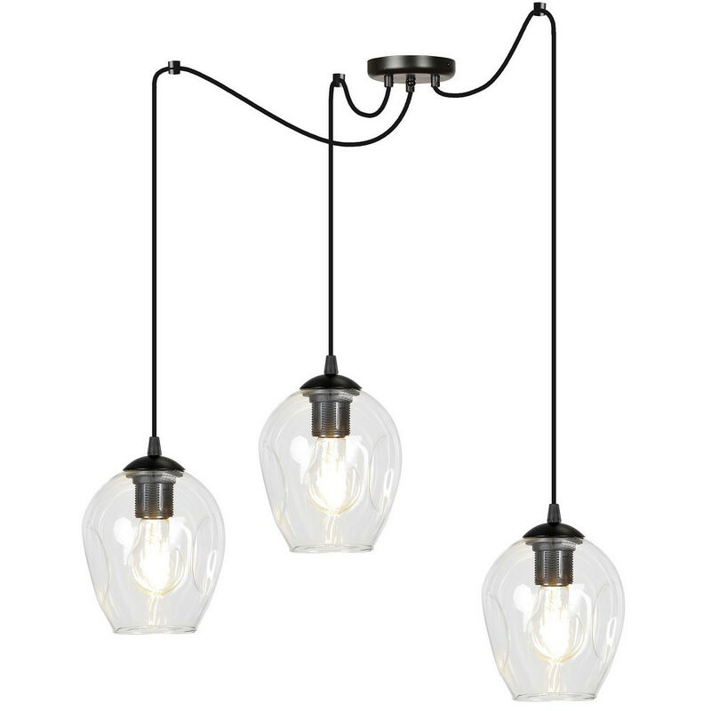 Emibig LEVEL Plafoniera a sospensione a grappolo in vetro nero con paralumi in vetro trasparente, 3x E27 | Finitura: nero | Materiale: acciaio, vetro | Grado di protezione IP: IP20 | Altezza: 200 cm | Larghezza: 14 cm | Diametro paralume: 14 cm | Tipo di lampada: E27 | N. di lampade: 3 | Lampadina inclusa: non inclusa | Dimmerabile: Sì - Sono necessarie lampadine dimmerabili | Peso: 1,8 kg | Potenza (max): 60 W