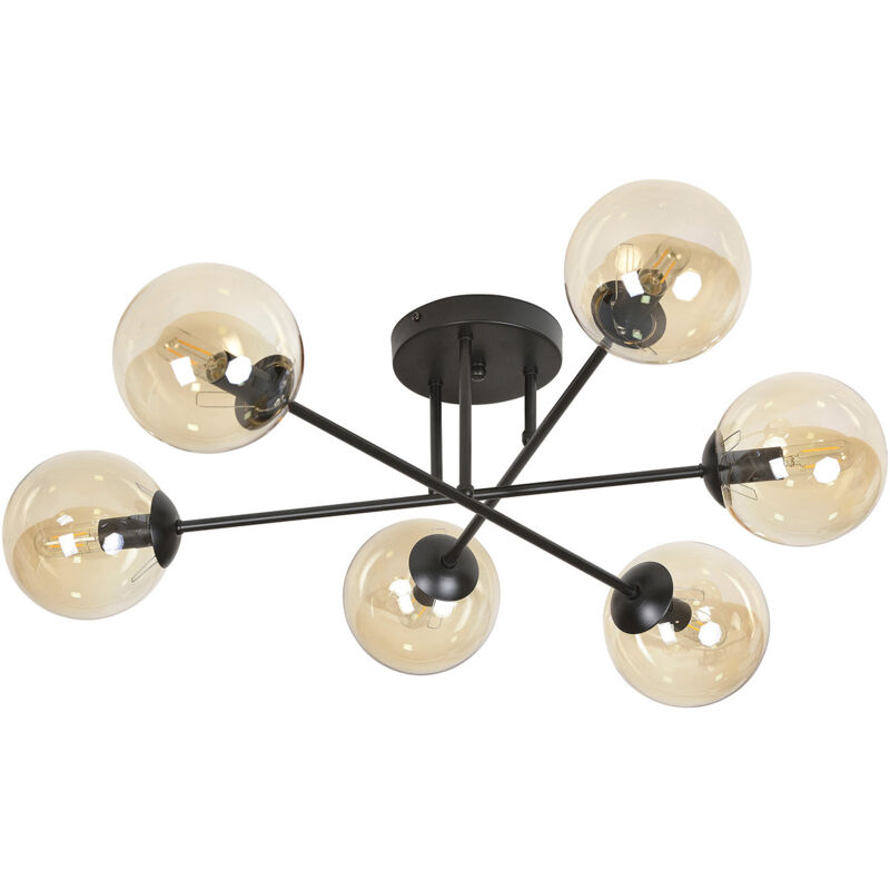 Emibig BRENDI Lampada da soffitto semi-incasso a braccio multibraccio nero con paralumi in vetro ambrato, 6x E14 | Finitura: nero | Materiale: acciaio, vetro | Grado di protezione IP: IP20 | Altezza: 26 cm | Larghezza: 75 cm | Diametro paralume: 14 cm | Tipo di lampada: E14 | N. di lampade: 6 | Lampadina inclusa: non inclusa | Dimmerabile: Sì - Sono necessarie lampadine dimmerabili | Peso: 3,3 kg | Potenza (max): 40 W