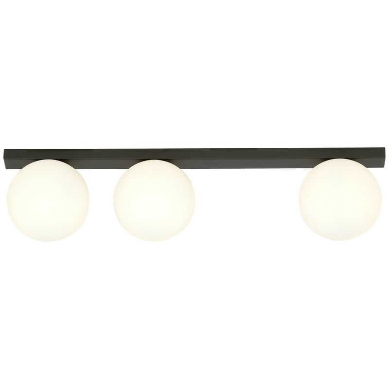 Emibig FIT Plafoniera a globo nera con paralumi in vetro bianco, 3x E14 | Finitura: nero | Materiale: acciaio, vetro | Grado di protezione IP: IP20 | Altezza: 17 cm | Larghezza: 70 cm | Diametro paralume: 15 cm | Tipo di lampada: E14 | N. di lampade: 3 | Lampadina inclusa: non inclusa | Dimmerabile: Sì - Sono necessarie lampadine dimmerabili | Peso: 1,5 kg | Potenza (max): 40 W