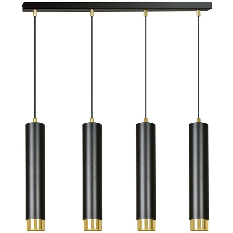 Emibig KIBO Plafoniera a sospensione con barra nera/oro 4x GU10 | Finitura: nero, oro | Materiale: acciaio | Grado di protezione IP: IP20 | Altezza: 100 cm | Larghezza: 60 cm | Tipo di lampada: GU10 | N. di lampade: 4 | Lampadina inclusa: non inclusa | Dimmerabile: Sì - Sono necessarie lampadine dimmerabili | Peso: 2,8 kg | Potenza (max): 30 W