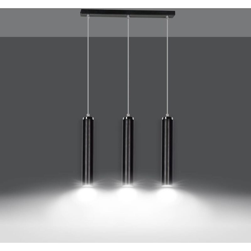 Emibig LUNA Plafoniera a Sospensione Bar Nera 3x GU10 | Finitura: nero | Materiale: acciaio, cromo | Grado di protezione IP: IP20 | Altezza: 100 cm | Larghezza: 45 cm | Tipo di lampada: GU10 | N. di lampade: 3 | Lampadina inclusa: non inclusa | Dimmerabile: Sì - Sono necessarie lampadine dimmerabili | Peso: 2,5 kg | Potenza (max): 30 W
