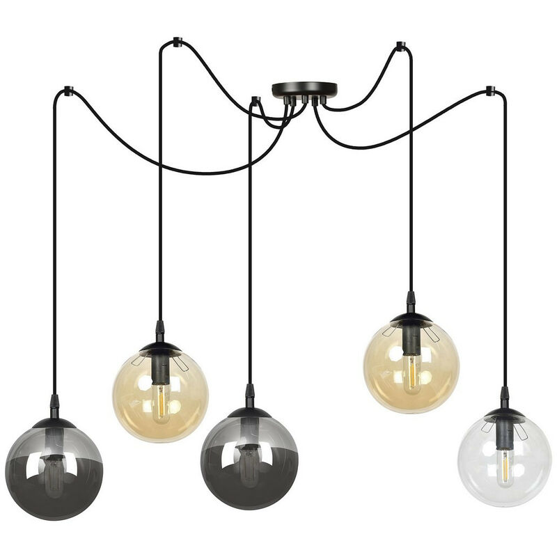 Emibig GIGI Plafoniera a sospensione a grappolo in vetro nero con paralumi in vetro trasparente, grafite e ambra, 5x E14 | Finitura: nero | Materiale: acciaio, paralume in vetro | Grado di protezione IP: IP20 | Altezza: 200 cm | Larghezza: 200 cm | Diametro paralume: 14 cm | Tipo di lampada: E14 | N. di lampade: 5 | Lampadina inclusa: non inclusa | Dimmerabile: Sì - Sono necessarie lampadine dimmerabili | Peso: 3,2 kg | Potenza (max): 40 W