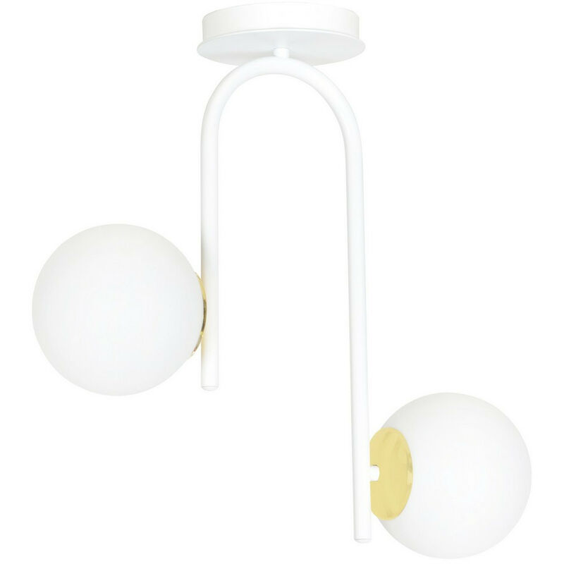 Emibig RAGNAR Plafoniera a globo bianco/oro con paralumi in vetro bianco, 2x E14 | Finitura: bianco, oro | Materiale: acciaio, vetro | Grado di protezione IP: IP20 | Altezza: 46 cm | Larghezza: 48 cm | Diametro paralume: 15 cm | Tipo di lampada: E14 | N. di lampade: 2 | Lampadina inclusa: non inclusa | Dimmerabile: Sì - Sono necessarie lampadine dimmerabili | Peso: 2 kg | Potenza (max): 40 W