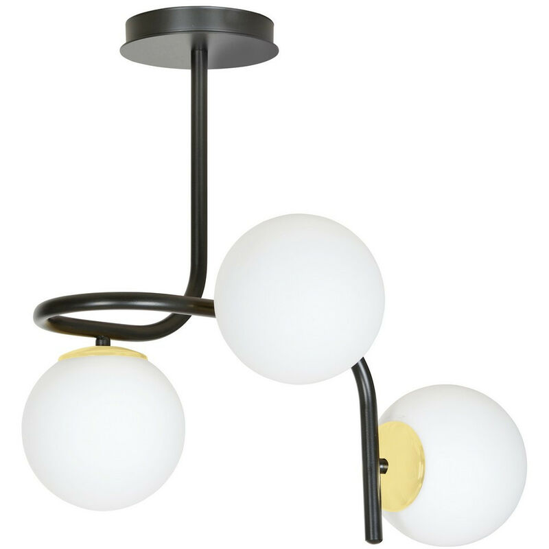 Emibig RAGNAR Plafoniera a globo nero/oro con paralumi in vetro bianco, 3x E14 | Finitura: nero, oro | Materiale: acciaio, vetro | Grado di protezione IP: IP20 | Altezza: 51 cm | Larghezza: 57 cm | Diametro paralume: 15 cm | Tipo di lampada: E14 | N. di lampade: 3 | Lampadina inclusa: non inclusa | Dimmerabile: Sì - Sono necessarie lampadine dimmerabili | Peso: 3 kg | Potenza (max): 40 W