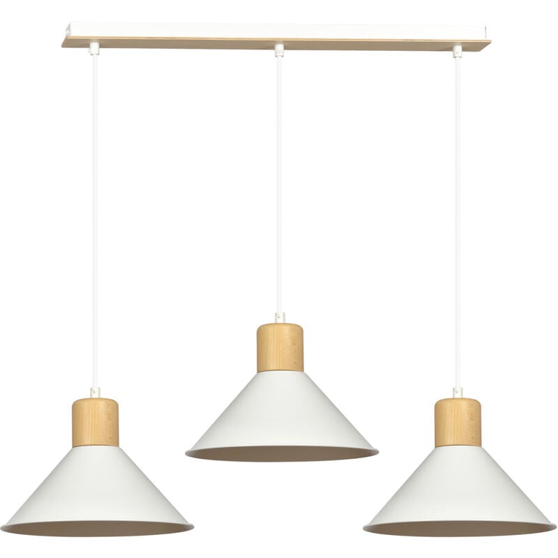Emibig ROWEN Plafoniera a Sospensione Bar Bianca 3x E27 | Finitura: bianco | Materiale: acciaio, legno | Grado di protezione IP: IP20 | Altezza: 100 cm | Larghezza: 86 cm | Tipo di lampada: E27 | N. di lampade: 3 | Lampadina inclusa: non inclusa | Dimmerabile: Sì - Sono necessarie lampadine dimmerabili | Peso: 3 kg | Potenza (max): 60 W