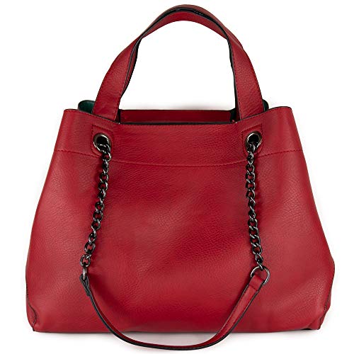 Emila Borsa rossa donna grande a spalla capiente con catena tracolla tipo hobo shopper bag borsello 3 tre pezzi da lavoro ufficio per tutti giorni giornaliera primavera estate 2023 Rosso