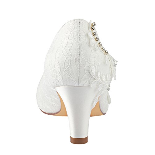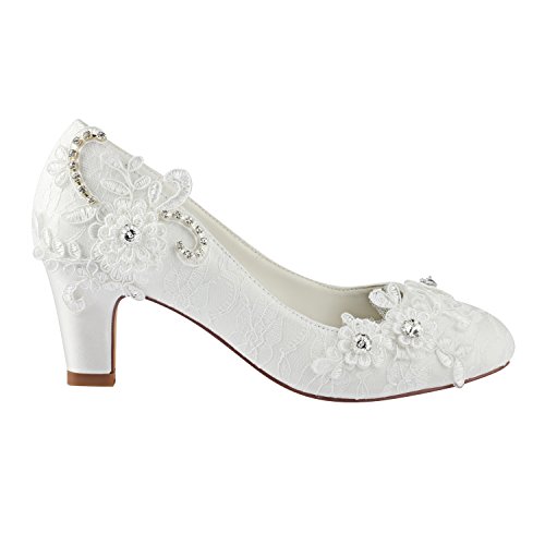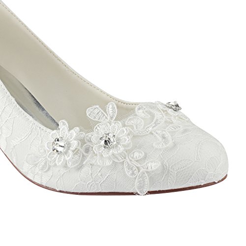 Emily Bridal Scarpe da sposa Donna Seta come Raso Tacco spesso Stiletto con punto Pizzo Fiore Cristallo, avorio, 38 EU