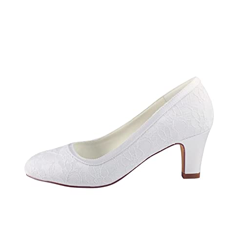 Emily Bridal Scarpe da Sposa Seta di Seta delle Donne Come Le Pompe di Tallone a Forma di Raso con Il Giunto Spaccato (EU36, White)
