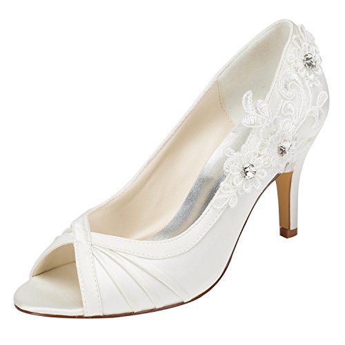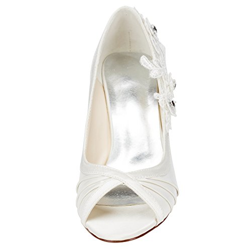 Emily Bridal Scarpe da Sposa Punta di Peep Toe con Stiletto in Satin Donna con Crysta Applique (EU37, Ivory)