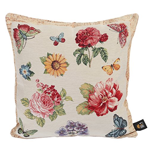 Emily Home Cuscino Arredo per Divano Fiori di Campo in Gobelin 45x45 cm