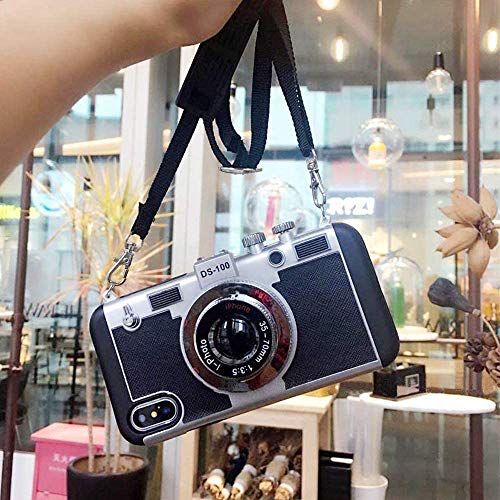 New Emily in Paris Phone Case Vintage Camera, Modern 3D Vintage Style Camera Design Cover in Silicone Antiurto con Cordino Lungo per Huawei P30 / PRO, Nero (per Huawei P30)
