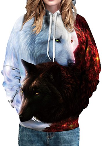 EMILYLE Donna Felpa Unisex 3D Animal Print Pullover Galaxy con Cappuccio Maglie Maniche Lunghe (S/M, 0 Lupo Rosso E Bianco)