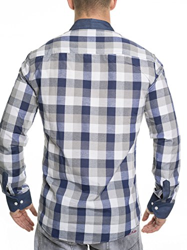Emimay Uomo a Maniche Lunghe Camicia a Quadretti doppelfarbig 3002