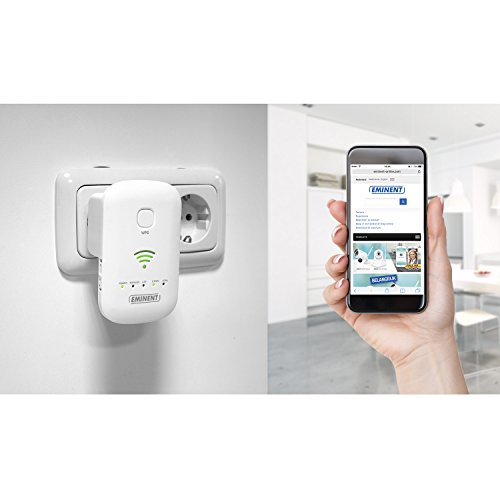 Eminent EM4597 Ripetitore/Range Extender Universale Wi-Fi AC1200, Doppia Banda, Acces Point e Router, 2 Porta Ethernet 10/100 Mbps, Pulsante WPS, Bianco