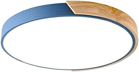 EMISOO Plafoniera LED Macaron Rotonda, Plafoniera Moderna in Legno Illuminazione A Soffitto A Incasso per Camera dei Bambini, Soggiorno, Camera da Letto, Corridoio,Blu+Bianco Freddo-40cm 27W