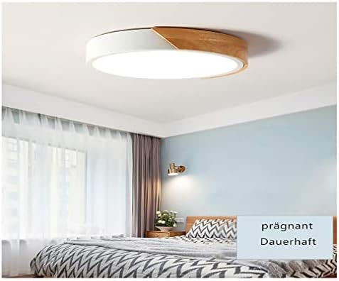 EMISOO Plafoniera a LED con Telecomando, illuminatore Rotondo Moderno, plafoniera con venature del Legno incorporate, Luce Interna per Studio Soggiorno Semplice (Bianco, Luce Neutra φ50cm)