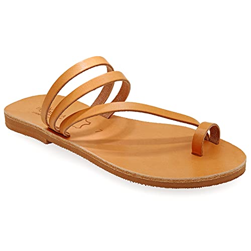 Emmanuela sandali con anello in stile greco, sandali in pelle con cinturino piatto fatti a mano di alta qualità, scarpe estive da donna, sandali con cerniera boho chic, beige, 36 EU