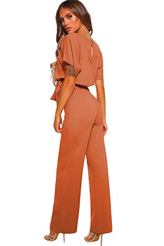 Emmarcon Tuta Lunga Jumpsuit Elegante Abito Cerimonia Donna Maniche Corte a pipistrello-Brown-red-IT48-50/XL