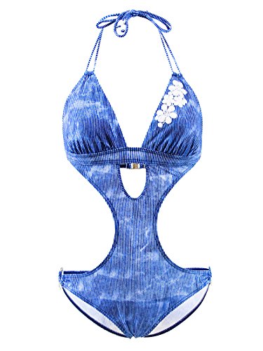 Emmatika Costume da Bagno Trikini Denim Triki Blu