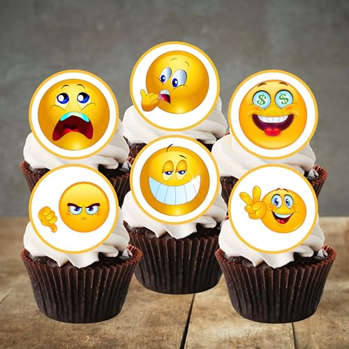 Emoji Edible PREMIUM THICKNESS SWEETENED VANILLA, Wafer Rice Paper Cupcake Toppers/Decorations by Cian's Cupcake Toppers Ltd