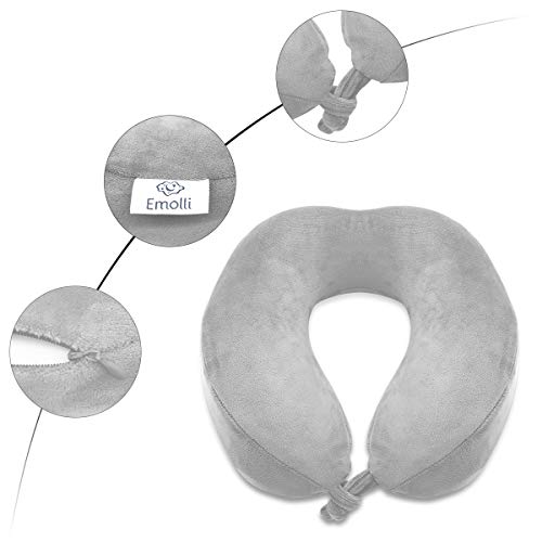 Emolli Cuscino da viaggio portatile con mascherina per dormire - Guanciale Memory Foam Neck con leggero Quick Pack per volo a lunga distanza