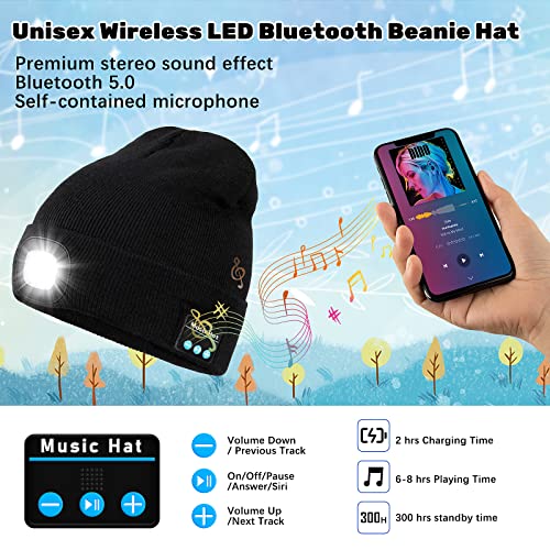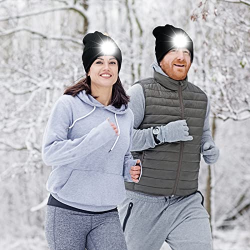 Emooncn LED Cappello Illuminato Berretto con Guanti da Corsa Touchscreen 2 in 1 Bluetooth 5.0 Berretto Musicale con Luce LED Ricaricabile Berretto Invernale Caldo Regali di Natale (Ferroso)