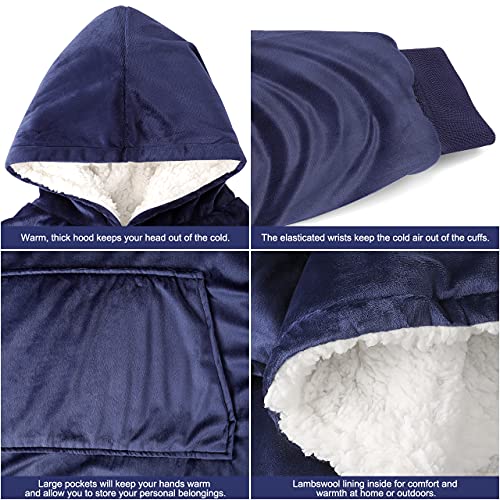 Emooqi Coperta con Cappuccio Felpa Oversize, Felpa Coperta Blu, Una Felpa Gigante con Grandi Tasche per Calore e Morbidezza, Adaptée aux Hommes, aux Femmes et aux Adolescents