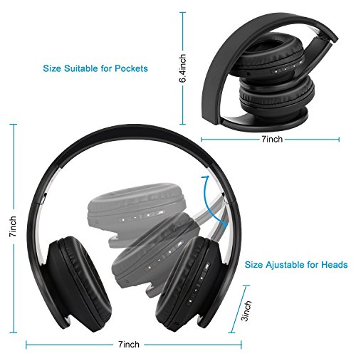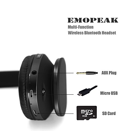 Emopeak cuffie Bluetooth over Ear Hi-Fi wireless stereo Headset, pieghevole, morbido memory-protein paraorecchie, microfono integrato e cavo Mode per PC/cellulari/TV Q1-01 Black0