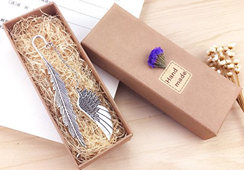 EMosQ Segnalibro in metallo, con rivestimento in ottone, a forma di piuma, classico, realizzato a mano, in confezione regalo wing-silver