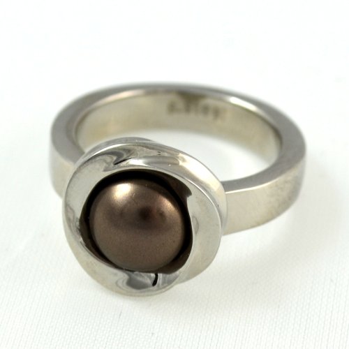 EMotikO Anello acciaio chirurgico e perla di fiume *Pearl of Africa* Taglia 11