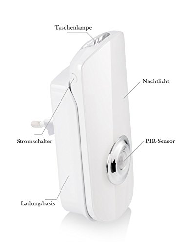 Emotionlite 5 in 1 Multifunzione Luce Notturna LED con Sensore di Movimento e Sensore di Luce Torcia Elettrica Portatile Luce di Emergenza Movimento Rlevamento PIR Crepuscolo Bianco Caldo