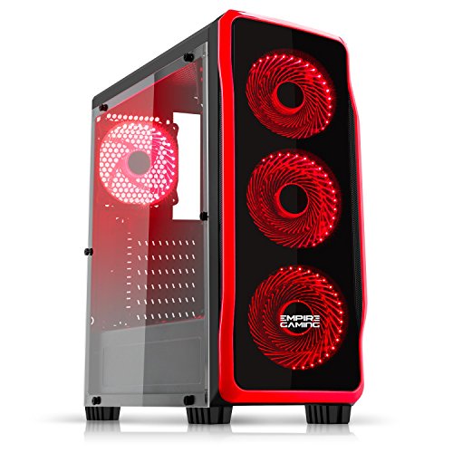 Empire Gaming - Case PC Gaming DarkRaw Nero LED Rosso: USB 3.0 e USB 2.0, 4 Ventole LED 120 mm + controllore ventole, parete laterale 100% trasparente - ATX / mATX / mITX