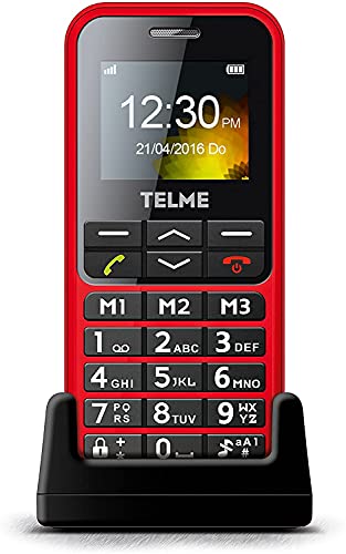 Emporia TELME C151 - Telefono Cellulare per Anziani, Volume alto, Bluetooth, Display 1.8" a colori, Tasti Grandi, Tasto SOS, Basetta di ricarica, Red (Italia)