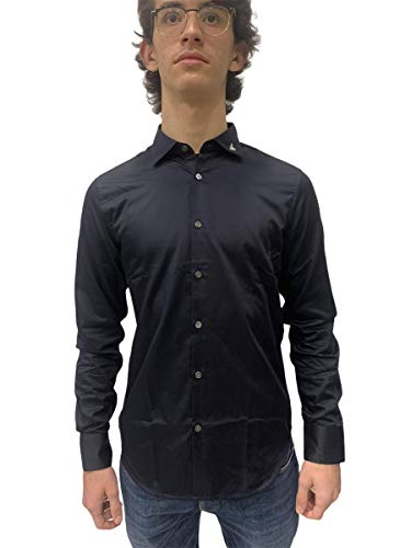 Emporio Armani Camicia Uomo Slim Fit con Logo Eagle sul Collo Blu TG M