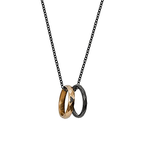 Emporio Armani Collana Da Uomo Sentimental, Lunghezza: 525mm / Dimensioni Ciondolo Oro Antico: 24mm X 5mm X 2mm, Ciondolo Nero: 24mm X 3mm X 3mm Nero Collana In Acciaio Inox, EGS2760001