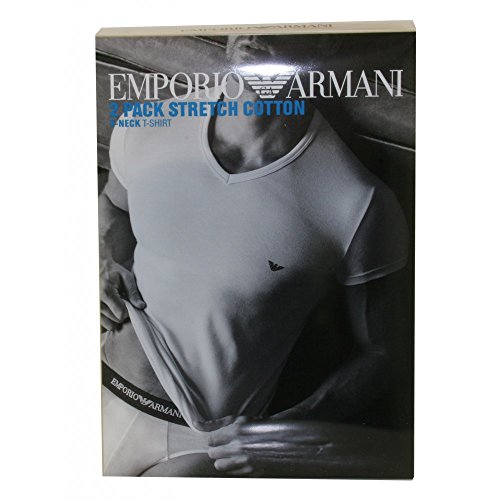 Emporio Armani, pacco da 2 t-shirt in cotone elasticizzato con scollo a V, colore: nero/grigio