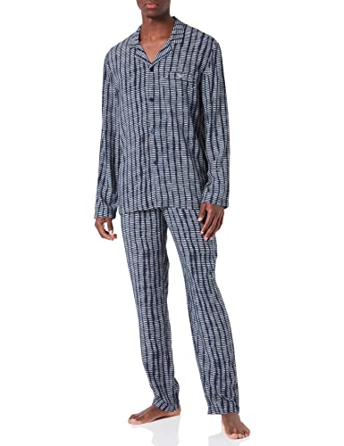 Emporio Armani Long Sleeves Shirt & Trousers Fluid Viscose Pyjama Set Pajama, Steel/Marine Striped, M Uomo