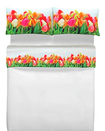 L'EMPORIO CASA Set Lenzuola Completo Matrimoniale 100% Cotone Lenzuolo sopra 245x290CM+Lenzuolo sotto Angoli 180x200+Coppia Federe Patella 50x80 Floreali Tulipani Made in Italia