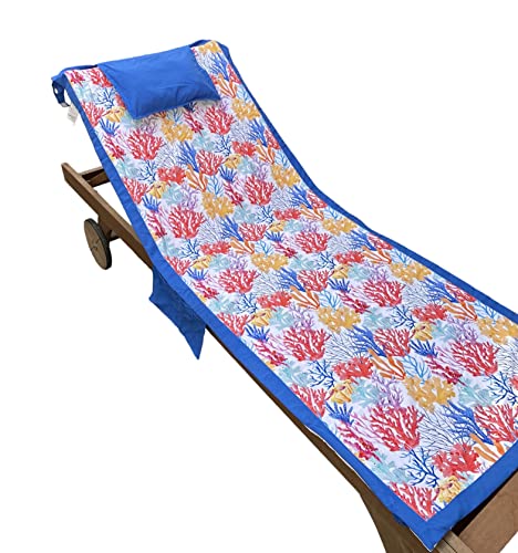 L'Emporio_Casa Telo Mare Piscina con tasche in morbida Microfibra sdraio lettino Digitale colori vari (Pesci Coralli)
