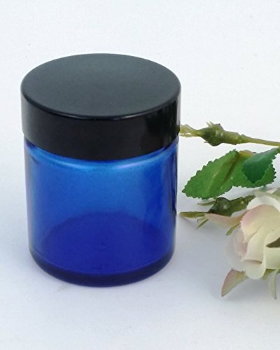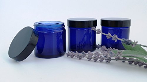 Pack of 3 x 60ml Empty Blue Glass Jar with Black Lid for Aromatherapy, Cosmetics and Cream by Avalon Cosmetic Packaging