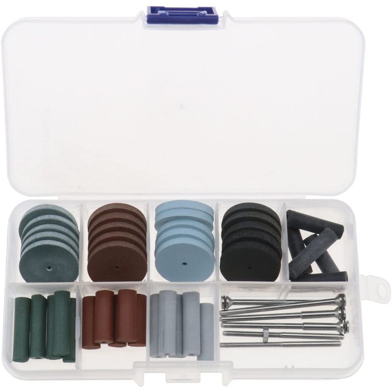 Descrizione dell'articolo: -Applicazione: queste mole per lucidatura sono ampiamente utilizzate nella produzione di gioielli, lavorazione del legno e scultura in legno, applicazioni lapidarie, hobby e artigianato, e modellisti. -MATERIALE AFFIDABILE: Questo prodotto è realizzato in gomma siliconica, lavorazione raffinata, buona resistenza all'usura, elevata forza di macinazione, alta temperatura e prodotti lucidati più fini. - Asta di manDRIN: questi mandrini sono divisi con un'asta di 2,35 mm. Sono progettati per essere utilizzati su manicotti rotanti. RPM: 8000-15.000. Ideale per gioielli, lavorazione del legno e scultura in legno. -Dimensione: Il diametro della ruota di lucidatura in gomma siliconica è di 22mm, lo spessore è di 3mm, la lunghezza del mandrino è 46,5mm, il diametro dell'asta è di 2,35mm. -Contenuto: otterrai 20 ruote di lucidatura in gomma siliconica in 4 colori e 20 particelle di lucidatura in 4 colori, 5 pezzi per ogni colore. Il mandrino 6 pezzi è incluso.
