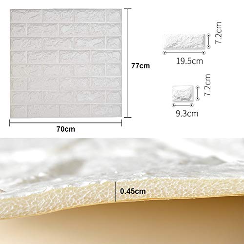 Emsmil 10 Pezzi Carta da Parati 3D Mattoni Bianco 70 x 77 cm Pannelli Adesiva per Muro Moderna Impermeabile PE Foam Pannello Parete Decorativo per Cucina Bagno Soggiorno Salone Ufficio TV Sfondo