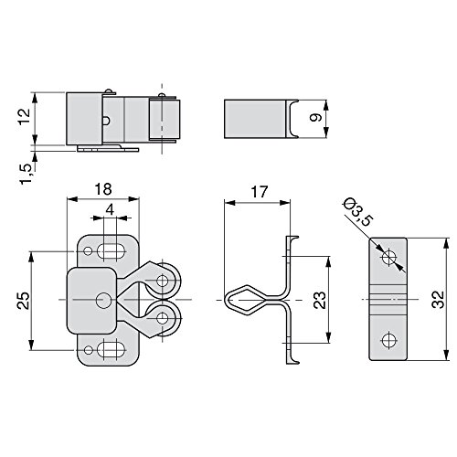 Da avvitare sulla superficie del mobile (viti non incluse): la chiusura a pressione all'interno del mobile ed il fermo del meccanismo sull'anta.