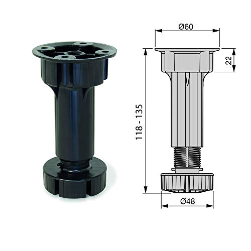 Emuca 2032217 Piedino Regolabile per Cucina o Bagno con Accessori, Nero, H 120 mm, Set di 4 Pezzi