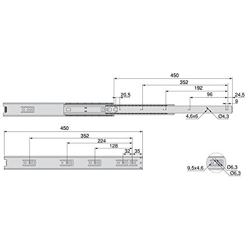 Emuca 3007405 Guide/Binari con Cuscinetti a Sfere ad Estrazione Totale per Cassetto, 45 x 450 mm, Zincato, 450mm