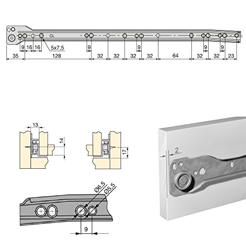 Emuca 3007925 Guida-Binario con Cuscinetti a Rulli per Cassetto, Grigio Metallizzato, 450 mm, Set di 5