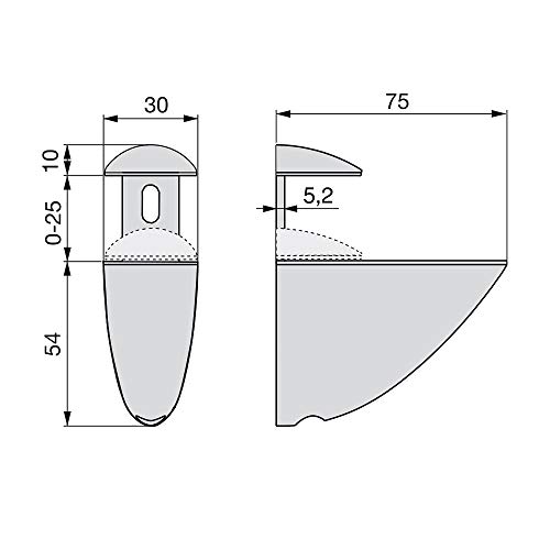 Emuca 4009424 Coppia di Reggimensola Modele Azor per Mensole in Legno/Vetro/Cristallo di Spessore 0-25 mm, Nichel Satinato