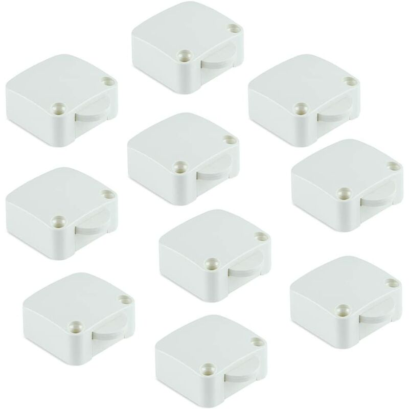 Confezione da 10 interruttori per porta ad uso domestico a 2 posizioni (ON-OFF).Permettono di accendere e spegnere l'illuminazione interna del mobile attraverso la porta.Compatibili con porte a battente e scorrevoli.Contenitore in plastica bianca.Alimentazione: 250V CA - 10A.