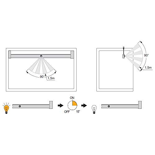 Sensore di movimento integrato che permette accendere la lampada avvicinandosi a meno di 1,5 metri e spegnere la luce 15 secondi dopo aver uscito dall'angolo di rilevamento.